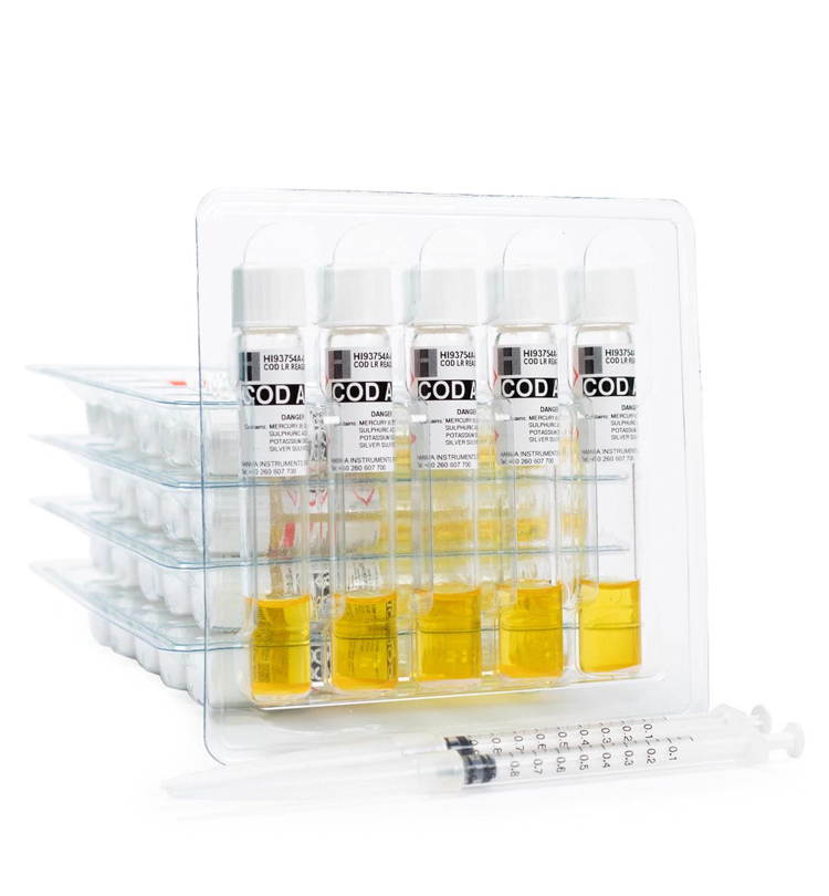 - Vì các ống thuốc đã được phân lượng sẵn, nên thời gian chuẩn bị trước khi đo sẽ giảm đáng kể và loại bỏ được quy trình chuẩn bị thuốc thử hoặc vệ sinh các dụng cụ thủy tinh tốn thời gian, đồng thời cũng tiết kiệm được hóa chất cũng như thời gian xử lý.